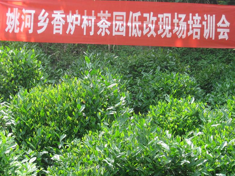 2011年开始低改已来,姚河乡累计改造低产茶园面积达到9650亩。主要技术措施有:改造园地,深翻改土;改造树冠,更新复壮;更新换种,调优结构等。经过改造后的茶园2012年亩均增收15%以上。