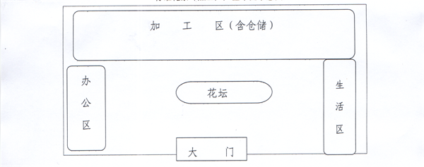 3、厂区布局:厂区由加工区、办公区、生活区组成,加工区与办公区和生活区应相对隔离,互相衔接,便于操作、又互不干扰(见下图)。