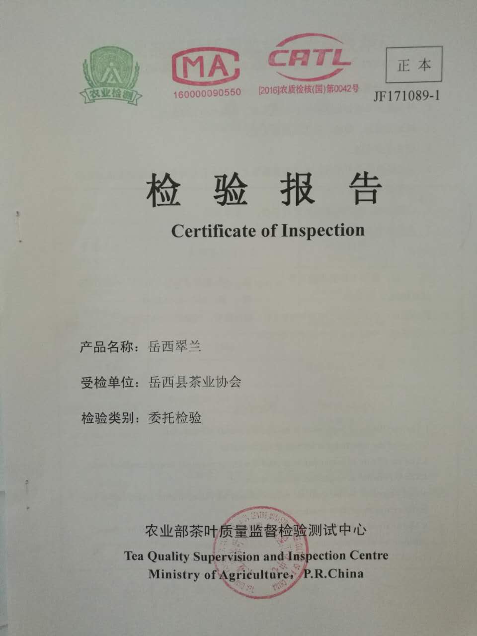 日前岳西县茶业协会收到农业部茶叶质量监督检验测试中心检验报告,报告显示随机抽取的36家获准使用岳西翠兰商标的茶叶企业样品,经国家权威部门检测全部达到无公害要求。
