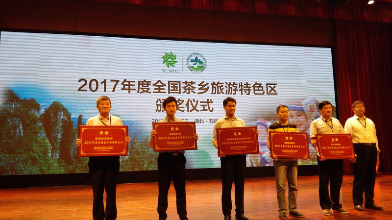 9月15-16日,第四届中国茶业大会在湖北省五峰土家族自治县举行,这是中国茶业大会首次走出北京,走进著名茶叶之乡举行。来自全国各地的专家、领导、嘉宾500余人汇聚一堂,探讨中国茶叶未来之路,共襄茶界盛事。大会进行了国家茶叶公园创建试点授牌和全国三十座最美茶园、全国茶乡旅游特色区、全国十大魅力茶乡的颁奖仪式,岳西县荣获“2017年度全国茶乡旅游特色区”。
