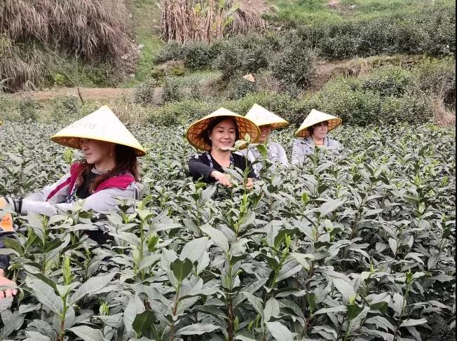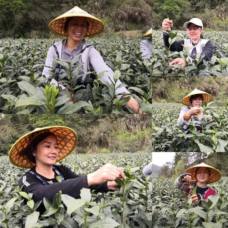 菖蒲村女子采茶服务队优先帮助贫困户抢采春茶