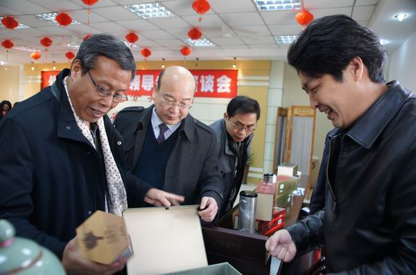 2011年2月20日.新年伊始,春风和熙。为调查、研究安庆市名特优产品,编制外交部“礼品采购名录”,外交部机关及驻外机构服务中心张宝林副主任一行,来到古城安庆。安徽翠兰投资发展有限公司董事长崔栋梁先生,应邀出席外交部服务中心领导此行在我市召开的座谈会。 “外交部服务中心领导座谈会”,由安庆市委常委、副市长张大兴主持。会上,听取了安庆市商务局局长黄先满同志所作的《安庆市经济社会发展概况》的汇报,听取了特邀参加的安徽翠兰投资发展有限公司等三家特色企业所作的“产品推介”,参观了三家企业的展示产品,品尝了风味独特的“翡冷翠”牌岳西翠兰。 会议期间,张宝林副主任、张大兴副市长等领导,对“国礼茶”岳西翠兰生产企业——安徽翠兰投资发展有限公司,予以高度赞扬,对该公司生产的“翡冷翠”牌岳西翠兰系列产品,给予了充分肯定。
